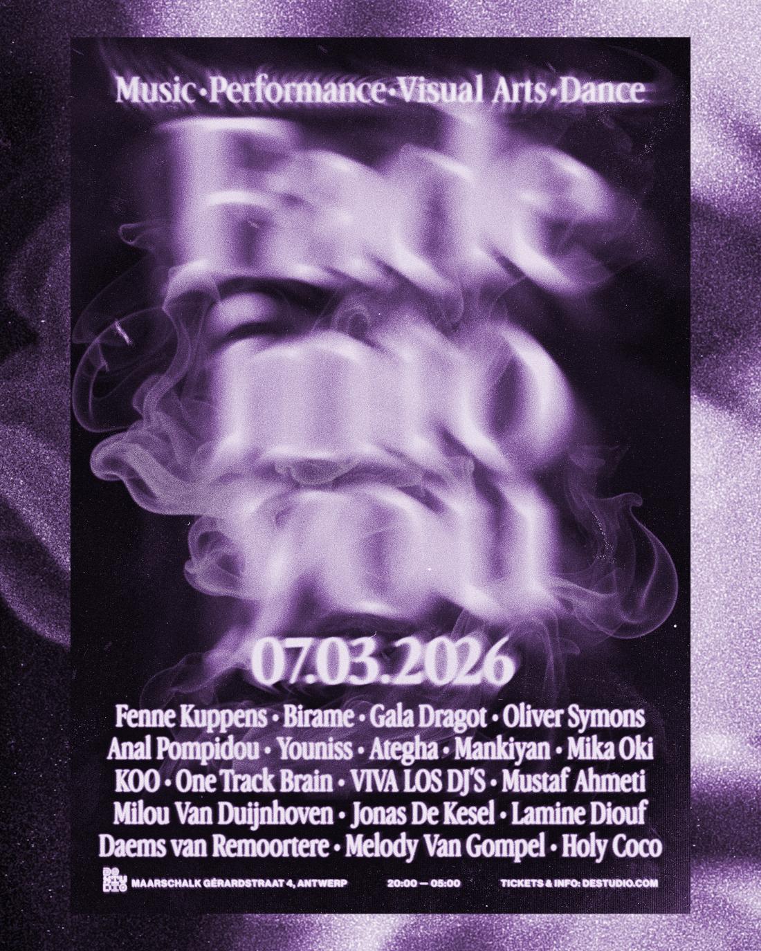 Fenne Kuppens - Birame - Gala Dragot - Oliver Symons - Anal Pompidou - Youniss - Ategha - Mankiyan - Mika Oki - KOO - One Track Brain - Viva Los DJ's - Mustaf Ahmeti - Milou Van Duijnhoven - Jonas De Kesel - Lamine Diouf - Daems van Remoortere - Melody Van Gompel - Holy Coco