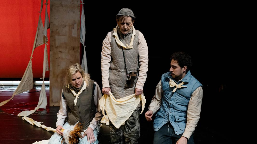 Met een scherpe tekst vol zwarte humor, slingert KAMP heen en weer over de soms dunne grens tussen propaganda en misleiding, tussen objectieve waarheid en online reviews, tussen acteren en overleven.