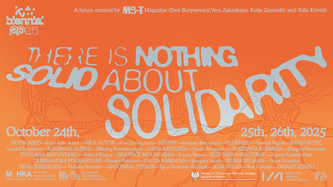 There Is Nothing Solid About Solidarity is a satellite program of Kyiv Biennial 2025, developed by the editorial team of MOST magazine (Ewa Borysiewicz, Vera Zalutskaya en Katie Zazenski) together with artist Yulia Krivich.