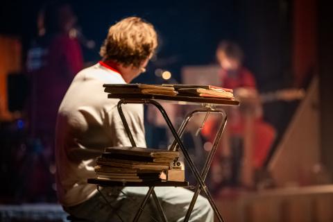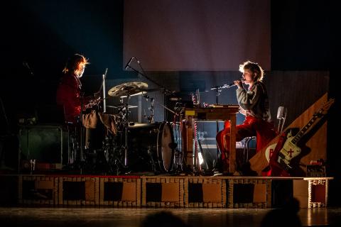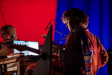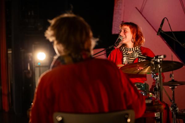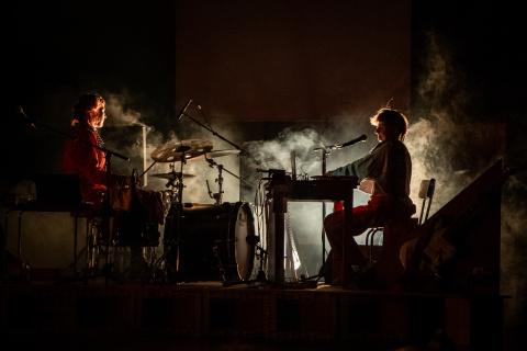 Muzikanten Kato Van Ermen en Engel Peet zorgen voor muzikale rust in de chaos van Petits hoofd.